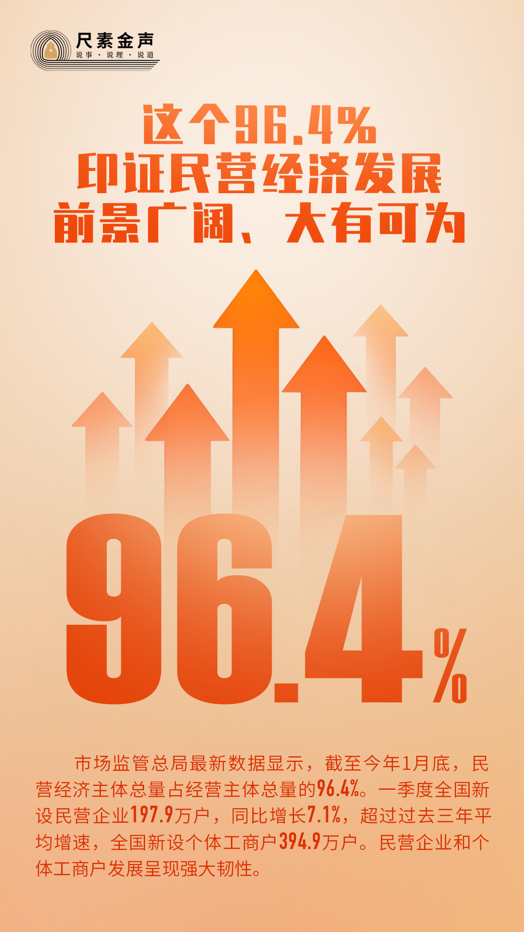 改革開放以來,特別是新時代以來,千千萬萬個像章華妹一樣的經(jīng)營者,不斷發(fā)展壯大。市場監(jiān)管總局最新數(shù)據(jù)顯示,截至今年1月底,民營經(jīng)濟(jì)主體總量占經(jīng)營主體總量的96.4%。一季度全國新設(shè)民營企業(yè)197.9萬戶,同比增長7.1%,超過過去三年平均增速,全國新設(shè)個體工商戶394.9萬戶。民營企業(yè)和個體工商戶發(fā)展呈現(xiàn)強(qiáng)大韌性。