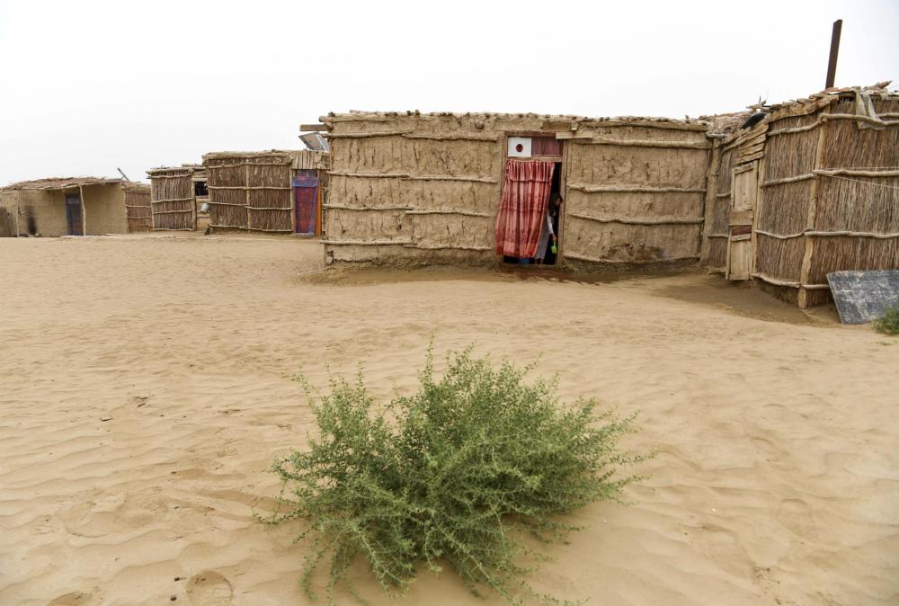 新疆于田縣達里雅布依鄉(xiāng)新村“藏身”于這片沙海。民房齊整氣派,不遠處就是高大延綿的沙丘。