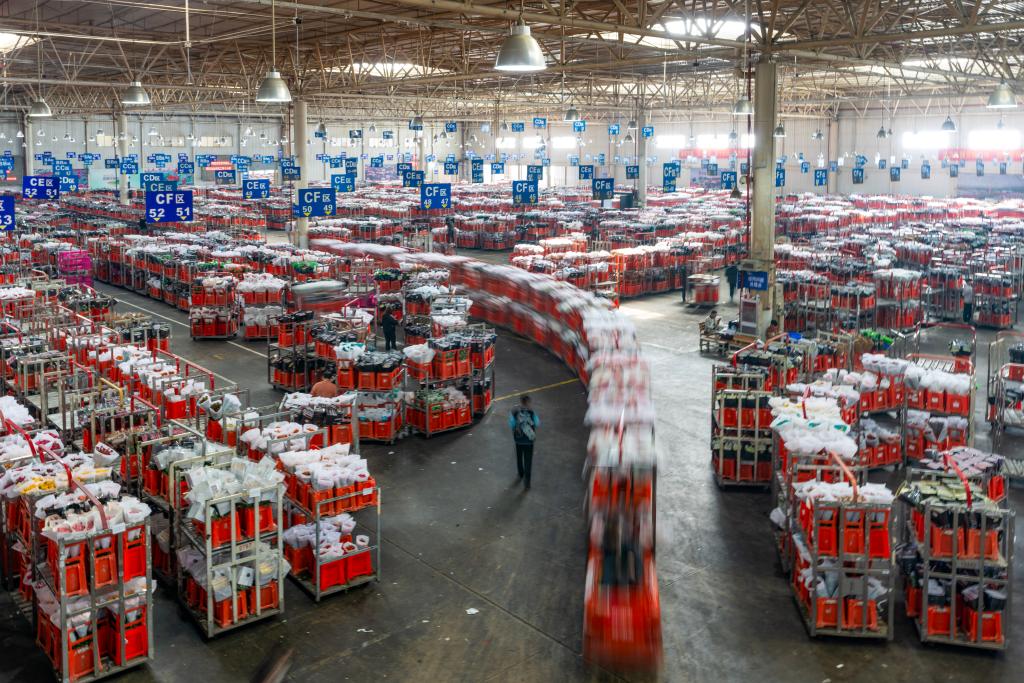1月22日,臺(tái)車在昆明國際花卉拍賣交易中心內(nèi)轉(zhuǎn)運(yùn)鮮花。新華社記者 陳欣波 攝