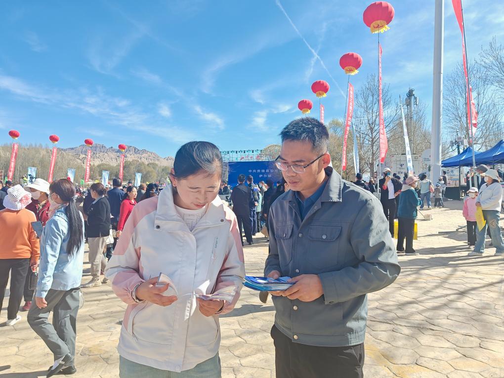 4月12日,蔡守文在招聘會現(xiàn)場給群眾講解就業(yè)政策。(受訪者供圖)