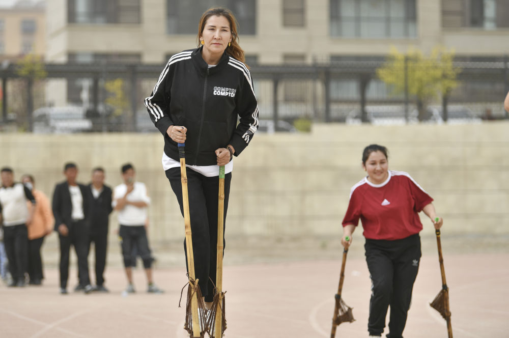從上學(xué)時(shí),柔鮮古麗就熱衷于參與各項(xiàng)體育活動(dòng)。無論是籃球、排球還是最擅長(zhǎng)的高腳競(jìng)速,她總會(huì)擠出時(shí)間報(bào)名參賽。她說,體育就像一道光,多年來照亮了大漠邊緣的生活?!八粌H可以鍛煉身體,也能舒緩我在生活中遇到的壓力。”