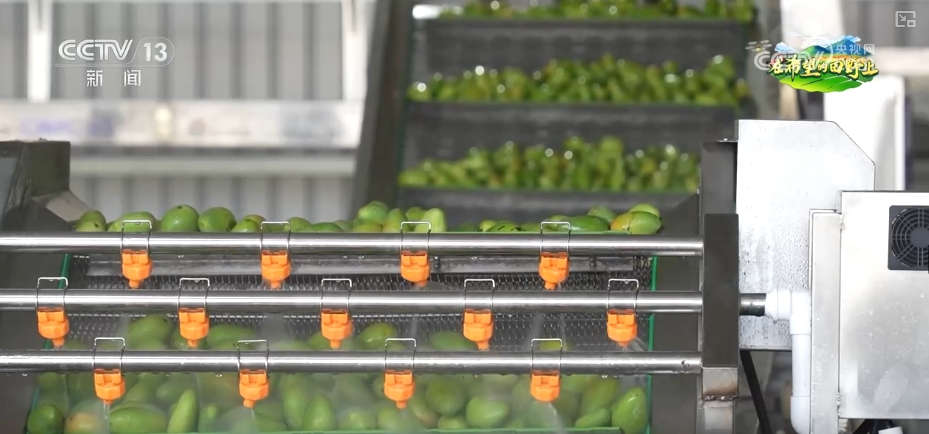 2025年,當(dāng)?shù)亟ǔ赏懂a(chǎn)的冷鏈園區(qū),配備了2條全自動(dòng)化分揀產(chǎn)線,從清洗、溫燙、分揀分級(jí)到打包、裝車(chē),全流程自動(dòng)化作業(yè),人力成本降低80%,可以讓芒果采摘后爭(zhēng)分奪秒地?fù)屨际袌?chǎng)。同時(shí),依托氣調(diào)保鮮技術(shù),冷庫(kù)可將芒果保鮮期延長(zhǎng)至1個(gè)月以上。