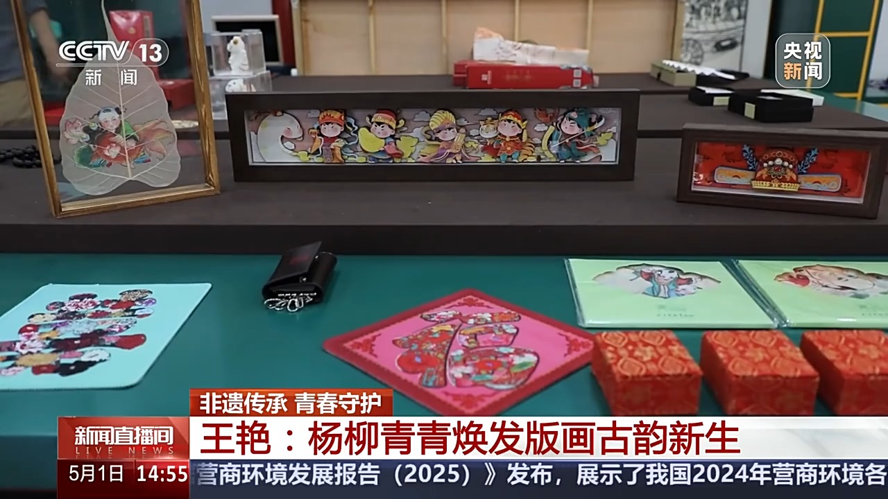 王艷在“老版復(fù)生”過程中,拆解傳統(tǒng)技法,比如畫訣中短胳膊短腿是多短?小鼻子大眼睛的比例怎樣會更好?她一一詳細(xì)記錄,貢獻(xiàn)了青年傳承人的“新民間經(jīng)驗(yàn)”。如今,古版年畫中的楊柳青元素也被開發(fā)成各式新潮的文創(chuàng)產(chǎn)品,“過年才貼的畫”變成了“身邊常見的畫”,讓年輕的消費(fèi)者愛不釋手。