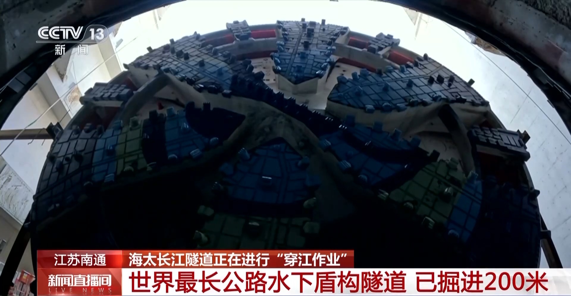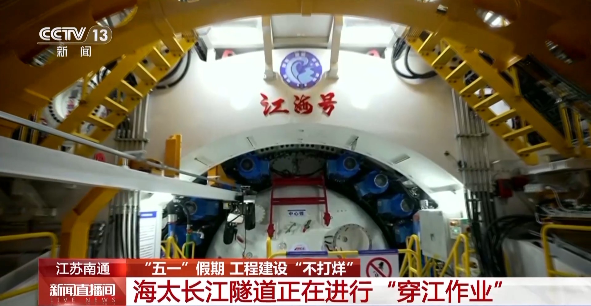 總臺記者 唐高林:江蘇南通海門區(qū)境內(nèi),靠近長江的地下深處,距離地面有30多米?!拔逡弧奔倨?,這里有三百多名工人持續(xù)奮戰(zhàn)在隧道施工一線。