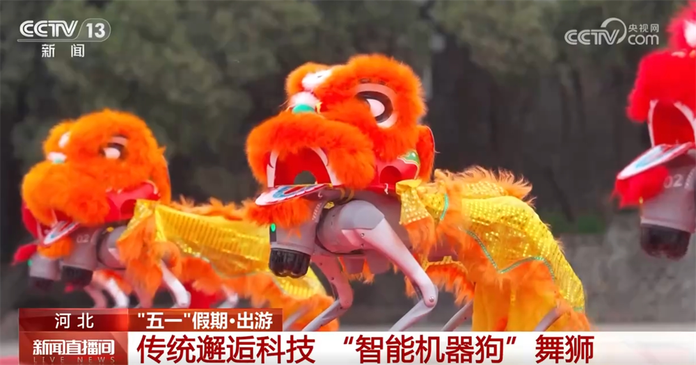 5月1日,在老龍頭景區(qū),醒獅技藝與智能機(jī)器狗的互動(dòng)表演《智舞雄獅》吸引了大批游客駐足、參與,4臺(tái)搭載智能交互系統(tǒng)的機(jī)器獅與醒獅隊(duì)同臺(tái)獻(xiàn)藝,現(xiàn)場(chǎng)游人沉浸式體驗(yàn)“長城+科技”的文旅新產(chǎn)品。