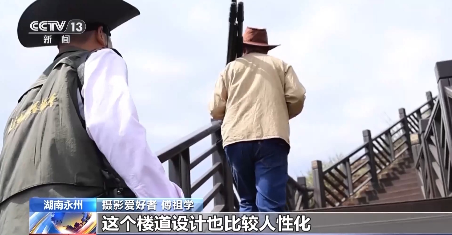 攝影愛(ài)好者 傅祖學(xué):我們?cè)谟^鳥之余,還可以順著樓道爬到山頂看風(fēng)景,這個(gè)樓道設(shè)計(jì)也比較人性化,每隔幾十米就有一個(gè)休憩的平臺(tái),爬累了就休息一會(huì)兒。
