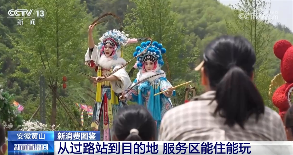 在這座位于山間的休閑廣場上,各種娛樂項目為旅客提供了多元化的休閑體驗,像徽戲表演、炒茶體驗、竹編技藝等非遺活動也為研學游提供了好去處。