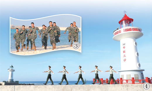 圖④:戰(zhàn)士們在島上巡邏。