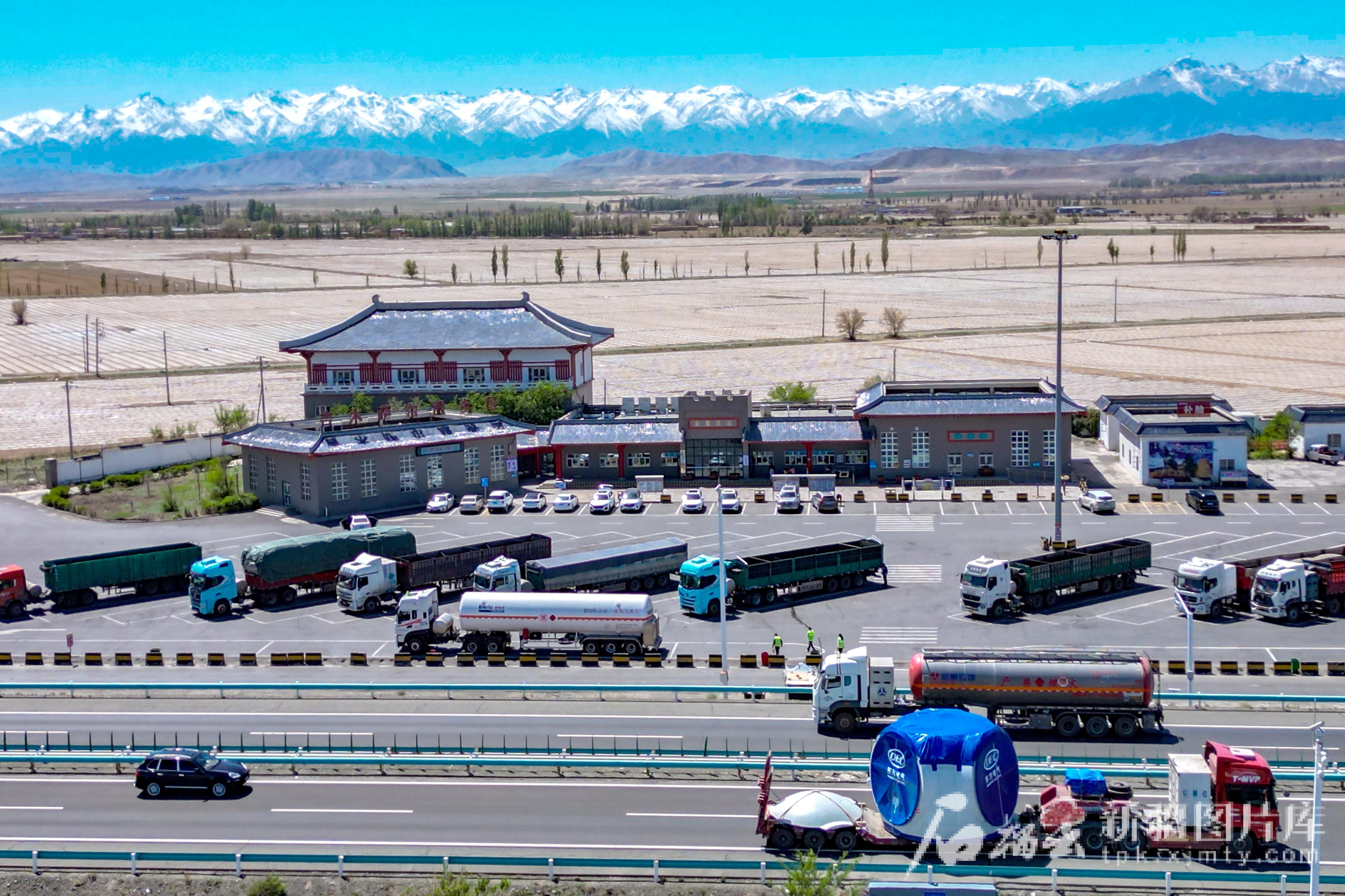 5月9日,京新高速吉木薩爾服務(wù)區(qū),車輛在服務(wù)區(qū)???。