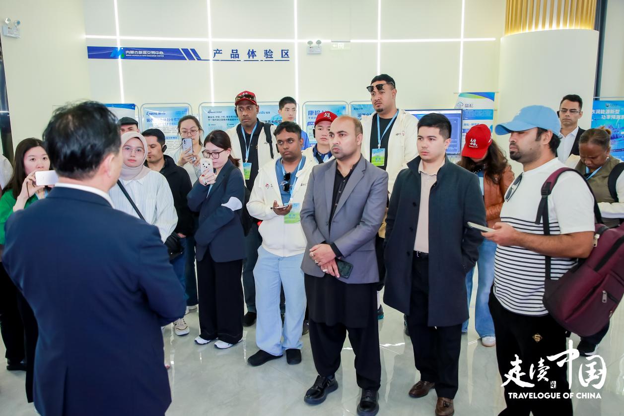 《喀布爾時報》總編尼克馬爾(中)在烏蘭察布(京蒙)人才科創(chuàng)園展廳仔細(xì)了解相關(guān)介紹
