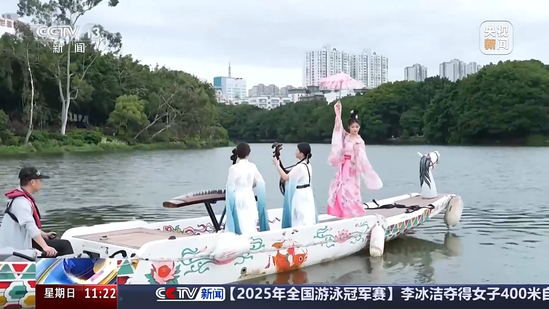 龍舟競(jìng)渡不僅是端午節(jié)的傳統(tǒng)盛事,在福建福州的多條內(nèi)河上,幾乎每周都會(huì)舉辦龍舟賽事,劃龍舟早已成為當(dāng)?shù)乩习傩兆顭釔鄣拿耖g體育活動(dòng)之一。這兩年來,在文化傳承與創(chuàng)新融合的推動(dòng)下,還催生了多樣化的消費(fèi)新場(chǎng)景,不僅提升了城市活力,也為當(dāng)?shù)氐奈穆媒?jīng)濟(jì)注入了新動(dòng)能。