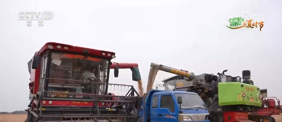 在河南南陽(yáng)鄧州構(gòu)林鎮(zhèn)這處麥田,金黃的麥浪層層鋪開(kāi),麥穗 在陽(yáng)光下熠熠生輝。4臺(tái)聯(lián)合收割機(jī)開(kāi)足馬力穿梭在麥田間,伴隨著機(jī)器的轟鳴聲,成熟的小麥被快速收割、脫粒,金黃的麥粒從收割機(jī)的出糧口傾瀉而出,裝入一旁的運(yùn)輸車輛。