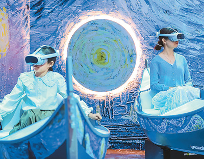 4月20日,游客在山東青島世博園XR梵高數(shù)字藝術(shù)體驗館進(jìn)行數(shù)字產(chǎn)品體驗。張 鷹攝(人民視覺)