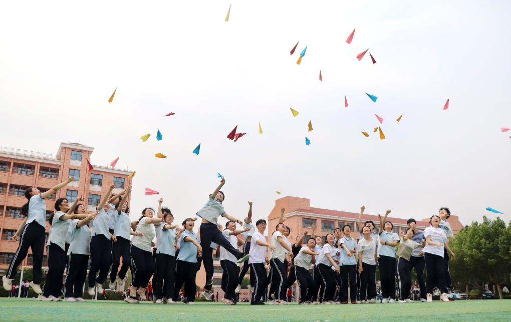 5月22日,在山東省高密市第五中學(xué),高三學(xué)生將寫(xiě)有夢(mèng)想的紙飛機(jī)拋向空中。高考臨近,各地學(xué)校組織高三學(xué)生開(kāi)展不同形式的減壓活動(dòng),幫助學(xué)生放松心情,迎接高考。 新華社發(fā)(李海濤攝)