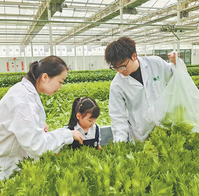 庫車市甬庫同心村智慧農(nóng)業(yè)植物工廠技術(shù)員帶領(lǐng)游客參觀。 王紅麗攝