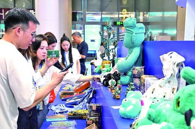 創(chuàng)意滿滿的文創(chuàng)產(chǎn)品帶來時(shí)尚潮流氣息——敦煌研究院的飛天系列絲巾、陜西歷史博物館的唐代仕女盲盒展現(xiàn)地域特色;在甘肅主題館,圓頭圓腦、憨態(tài)可掬的小神獸“蘭小五”成為引人駐足的“明星”;在“湖湘文創(chuàng)”展區(qū),竹片制作的扇子、飛盤、足球等文創(chuàng)產(chǎn)品新意十足;在文創(chuàng)中國展區(qū),數(shù)十座文化場館帶來了基于文物開發(fā)的文創(chuàng)產(chǎn)品,觀眾紛紛參與文創(chuàng)盲盒、集章打卡等活動。