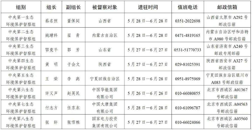 第三輪第四批中央生態(tài)環(huán)境保護督察進駐一覽表(圖片來源:生態(tài)環(huán)境部)
