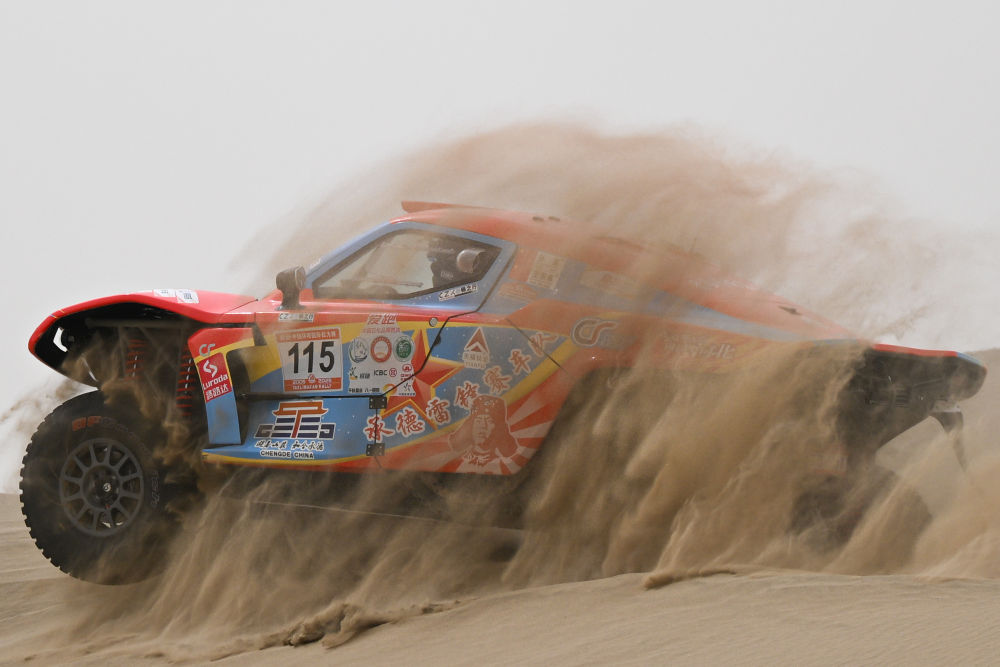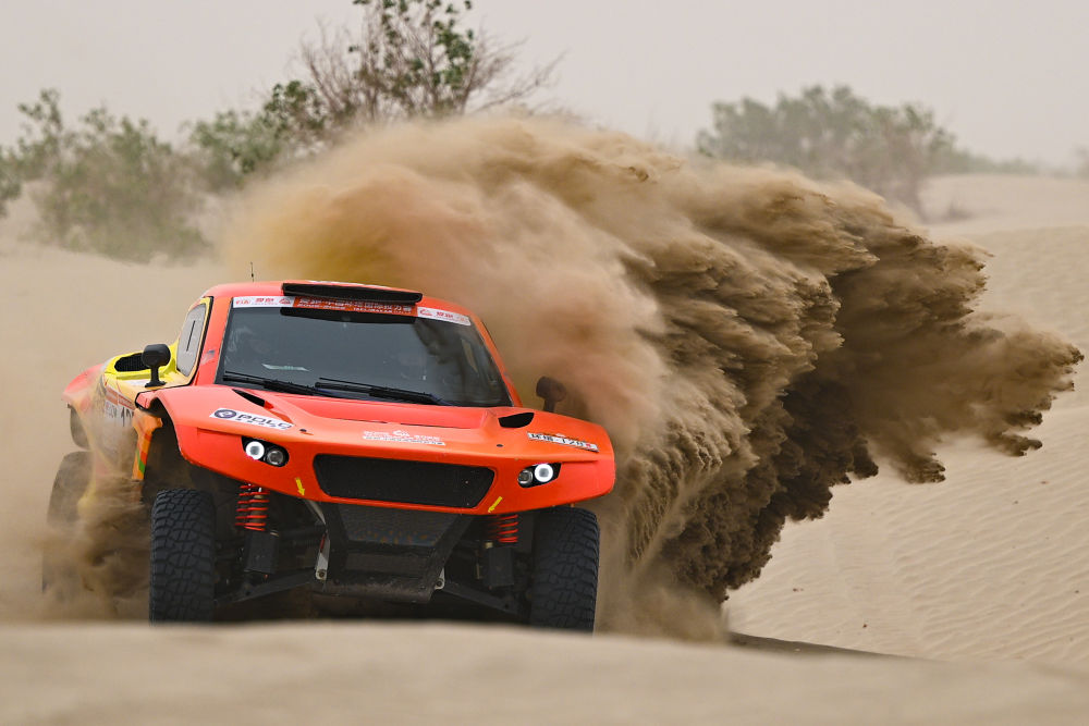 2025年5月31日,極道體育黑熊輪胎車隊車手趙善鵬、領(lǐng)航員郭峰在比賽中。新華社記者 辛悅衛(wèi) 攝