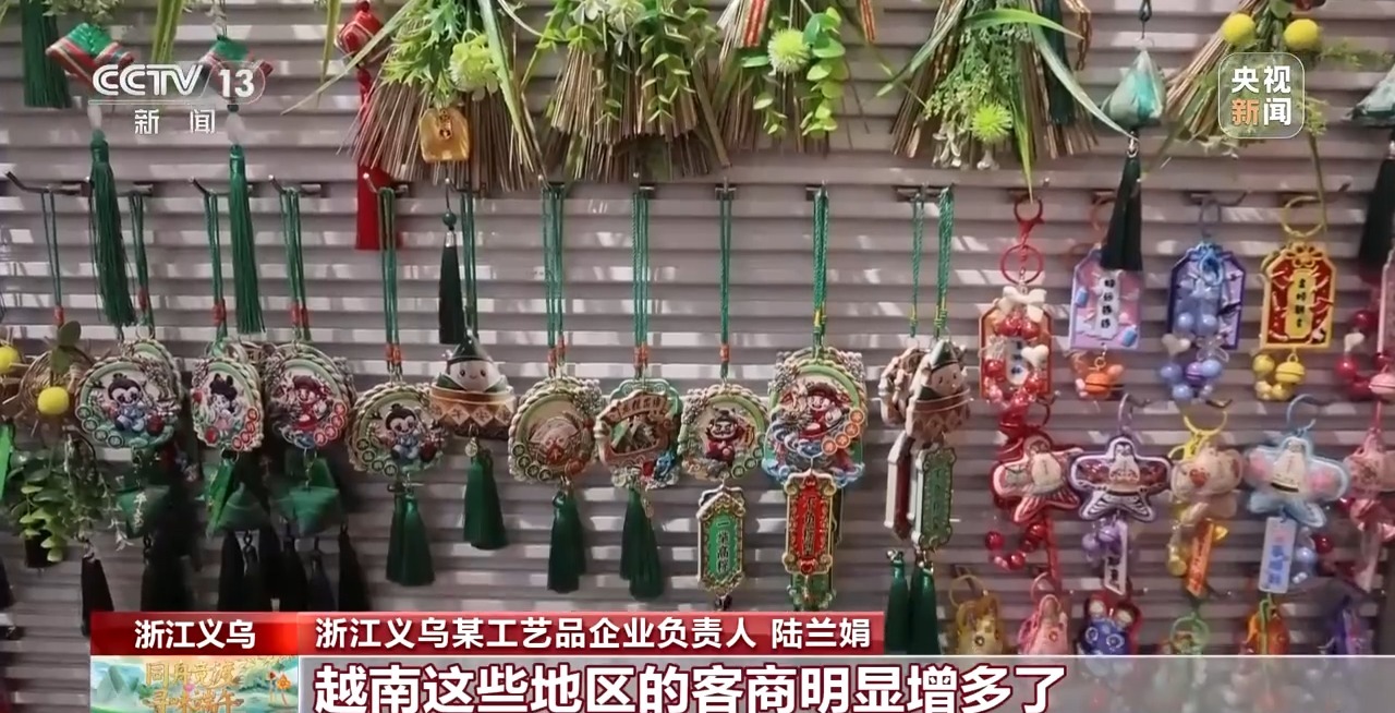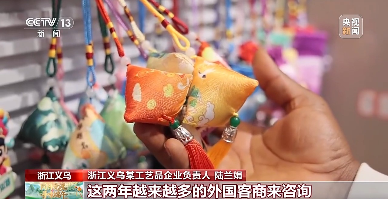 浙江義烏某工藝品企業(yè)負責人 陸蘭娟:以前香囊的消費群體以國內為主,這兩年,越來越多的外國客商來咨詢。前年賣出了15萬個左右,去年訂單翻了一番,有30萬個。那今年的訂單也明顯超過了過去,尤其是新加坡、馬來西亞、越南這些地區(qū)的客商明顯增多。
