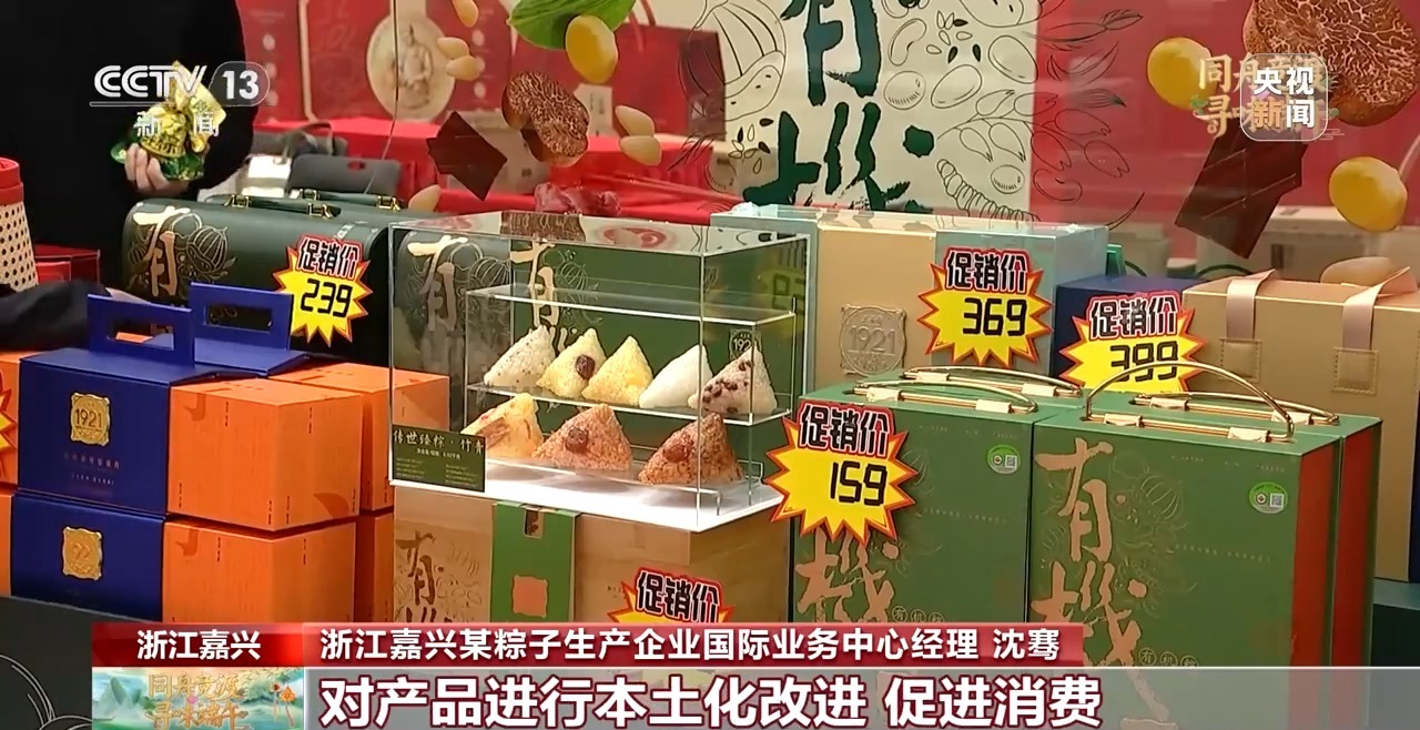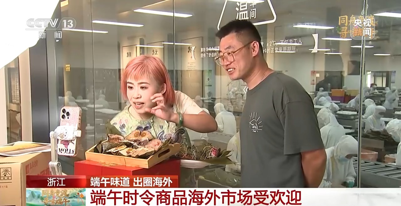 浙江嘉興某粽子生產(chǎn)企業(yè)國際業(yè)務中心經(jīng)理 沈騫:我們在直播中會展示粽子制作過程、食品溯源以及科普習俗,讓國外消費者了解粽子文化。我們還積極參加一些國內外的展會,結合當?shù)匚幕拖M習慣,對產(chǎn)品進行本土化改進,促進消費。今年,我們的粽子出口到了柬埔寨的商超和網(wǎng)購平臺,在韓國大棗粽和豆沙粽非常受歡迎。