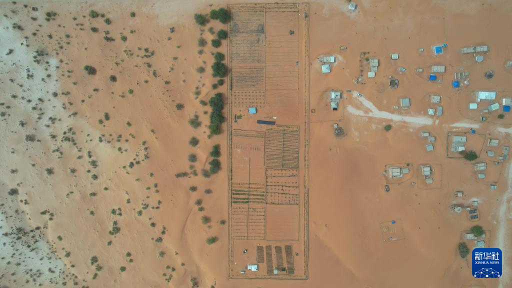 該示范項目由中毛雙方共同實施,中國科學院新疆生態(tài)與地理研究所提供示范區(qū)建設與后續(xù)技術(shù)支持。園區(qū)于2024年7月建成,占地4公頃,主要涵蓋外圍防沙阻沙區(qū)域、經(jīng)濟果林區(qū)、沙土蔬菜種植區(qū)、牧草種植區(qū)及家禽養(yǎng)殖區(qū)。比爾·巴爾卡村位于首都努瓦克肖特以東約70公里的沙漠邊緣?!拔覀儺敵踹x址時就考慮靠近首都圈,便于技術(shù)展示和后續(xù)培訓推廣。”曾親赴毛里塔尼亞參與項目建設的中方專家、中國科學院新疆生態(tài)與地理研究所沙漠研究團隊成員周娜介紹說。