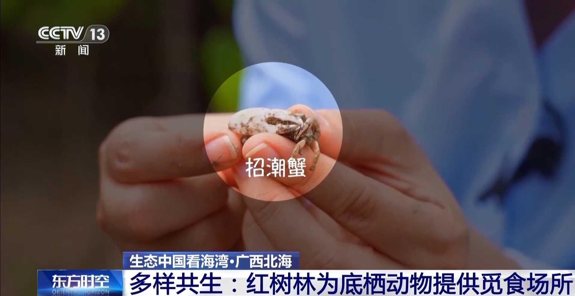 總臺記者 王潔:我手上就有兩只非常可愛的蟹類,非常小巧玲瓏,很可愛活潑,叫擬相手蟹,喜歡爬樹?;野咨氖谴菩罚坌穭t是個更大而且全身通紅,更加威風(fēng)凜凜,它們叫“招潮蟹”。