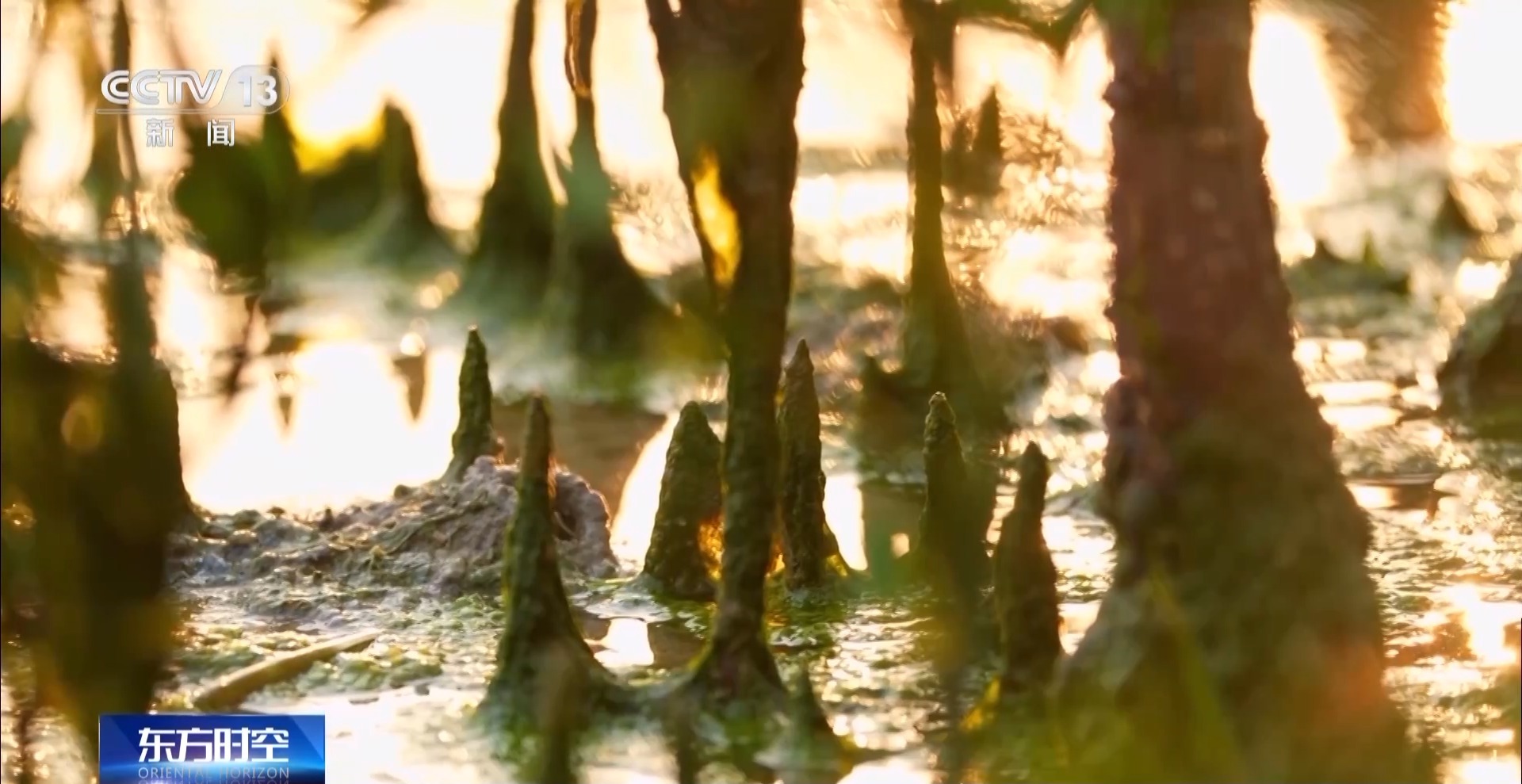 而在陸地與海洋交界處,有一種特殊的濕地類型,那就是被譽為“海岸衛(wèi)士”的紅樹林。在中國,它分布在廣東、廣西、福建、海南和浙江等沿海省份,是魚蝦、昆蟲、植物棲息的家園,也儲存大氣中多余的碳。劃定范圍、多樣修復(fù)、強化監(jiān)管,隨著紅樹林的系統(tǒng)保護在沿海省份有序展開,目前我國紅樹林面積已經(jīng)恢復(fù)增長至3萬多公頃,成為世界上少數(shù)紅樹林面積增長的國家之一。