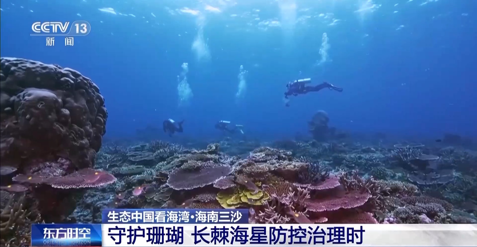 中國科學(xué)院南海海洋研究所西沙站工程師 楊清松:這個海星有十幾只臂,臂上面的觸手,它會伸出來,它把它的胃整個排出來,把珊瑚包裹住,把整個珊瑚的組織給消化掉,只剩骨骼了,這個跟珊瑚白化不一樣,吃掉就沒辦法了。