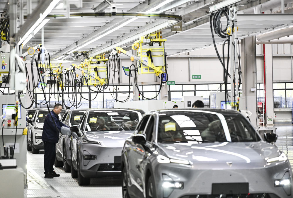 3月6日,工人在位于重慶市渝北區(qū)的長(zhǎng)安汽車數(shù)智工廠總裝車間作業(yè)。新華社記者 王全超 攝