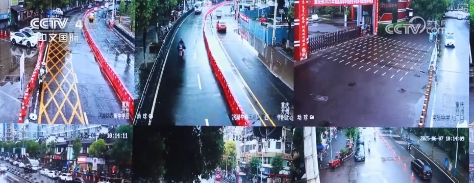 在山東淄博主城區(qū),各考點周圍利用無人機(jī)進(jìn)行高空道路巡檢,最大限度確保道路暢通,并設(shè)置“學(xué)生專用通道”,確??忌樌M(jìn)入考場。