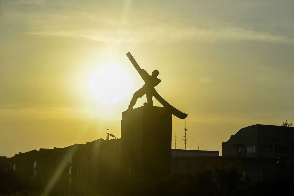 這是吉林市江城廣場(chǎng)上的搖櫓人雕像。新華社記者 顏麟蘊(yùn) 攝