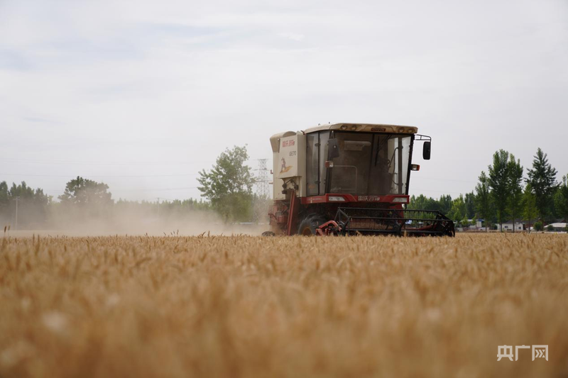 農機手在操作收割機收獲小麥(央廣網發(fā) 韓田田 攝)