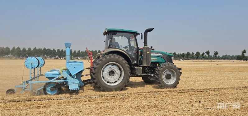 在新鄉(xiāng)市獲嘉縣位莊鄉(xiāng)大位莊村,種植大戶徐方海正操作著氣吹式玉米精量播種機,進行玉米種肥同播同步鋪設滴灌帶作業(yè)。當前,獲嘉縣夏收已結束。截至6月12日,全縣秋作物已播種33.64萬畝。