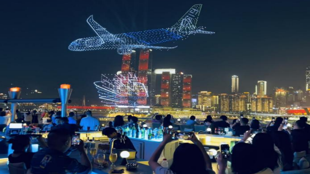 這場融合山城獨(dú)特地形與科技藝術(shù)的無人機(jī)燈光秀常態(tài)化展演以來,不僅引爆社交平臺話題,更意外激活了“天臺經(jīng)濟(jì)”。露臺空間、天臺餐廳、觀景酒吧等高空消費(fèi)場景迎來客流高峰,逐漸成為重慶新興消費(fèi)場景。