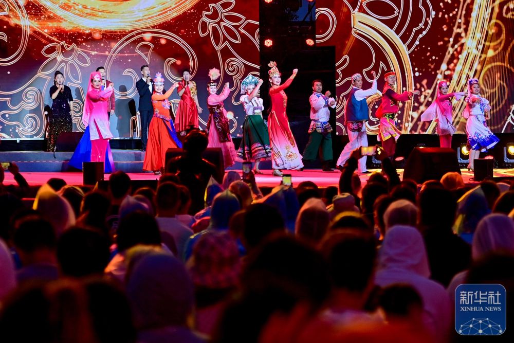 中國(guó)文聯(lián)文藝志愿服務(wù)團(tuán)隊(duì)“送歡樂下基層”文藝演出在新疆伊犁哈薩克自治州霍城縣香水體育公園舉行(6月14日攝)。