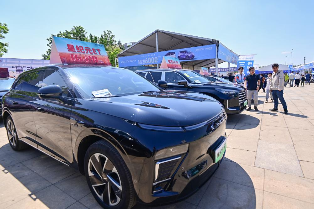 5月3日,消費者在山東省青州市舉辦的汽車·房產(chǎn)家居文化節(jié)上參觀選購展出的汽車。新華社發(fā)(王繼林攝)