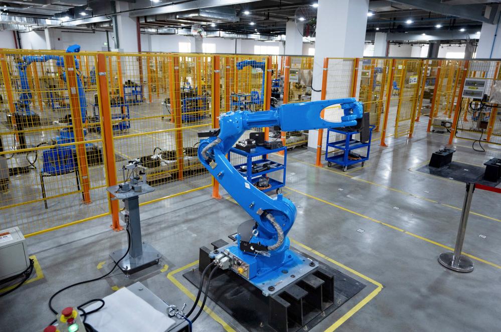 2024年11月13日,在成都卡諾普機器人技術股份有限公司,工業(yè)機器人在出廠前進行全自動測試。新華社記者 江宏景 攝