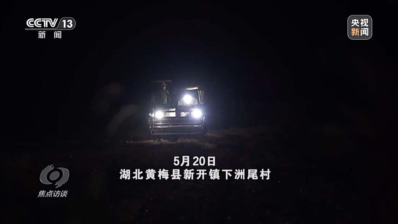 5月20日,湖北黃梅縣已經(jīng)進(jìn)入小麥?zhǔn)崭畹奈猜暎蟛糠洲r(nóng)戶已經(jīng)收割完小麥。突如其來(lái)的暴雨預(yù)警信息讓村民吳從先心急如焚:他家還有20畝小麥沒有收,只能連夜沖進(jìn)麥田開始搶收。