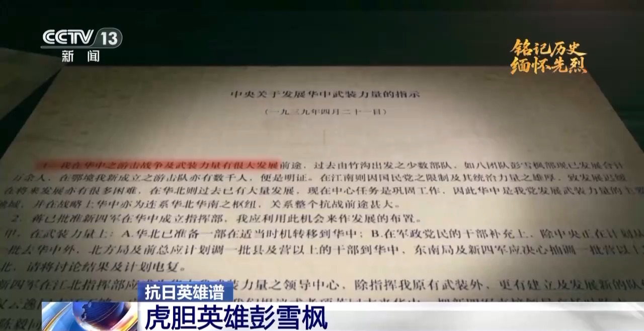 中國新四軍研究會副會長 劉春灝:當(dāng)時的作戰(zhàn)參謀就勸他到房子里邊去隱蔽,但是彭雪楓堅持指揮戰(zhàn)斗,他說指揮員的位置就應(yīng)該在前線。