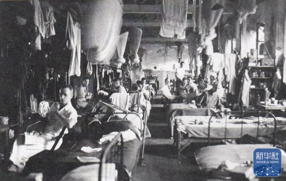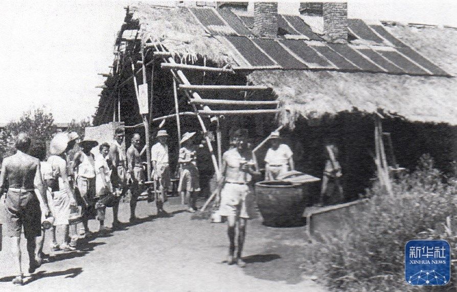 上海龍華集中營(yíng)里,人們?cè)谂抨?duì)取水(資料照片)。新華社發(fā)(上海中學(xué)供圖)