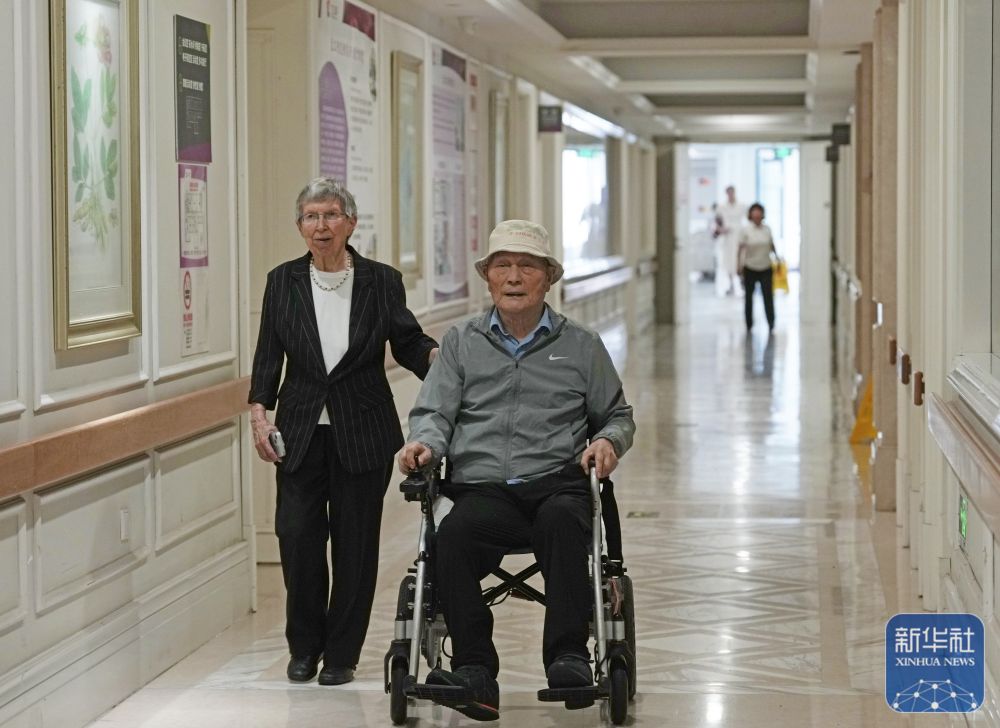 2025年6月13日,白麗詩(shī)與丈夫王正文在養(yǎng)老院里。