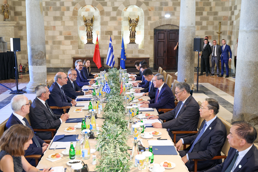 當?shù)貢r間7月4日下午,國務院總理李強在希臘羅德島會見希臘副總理哈齊達基斯。