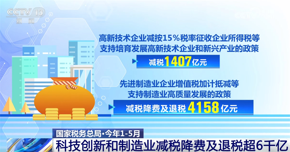 央視網(wǎng)消息:國家稅務(wù)總局7月4日公布的最新數(shù)據(jù)顯示,1—5月,科技創(chuàng)新和制造業(yè)減稅降費(fèi)及退稅超6000億元,在結(jié)構(gòu)性減稅降費(fèi)政策有力推動(dòng)下,我國科技創(chuàng)新與制造業(yè)高質(zhì)量發(fā)展加快推進(jìn)。