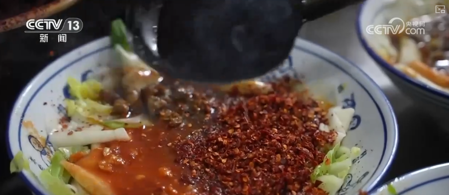 說(shuō)到面食,繞不過(guò)陜西著名的 面。這種面的特點(diǎn)是寬厚筋道,下鍋煮熟以后撈出,要撒上蔥姜蒜和辣椒面,再潑上一勺熱油。