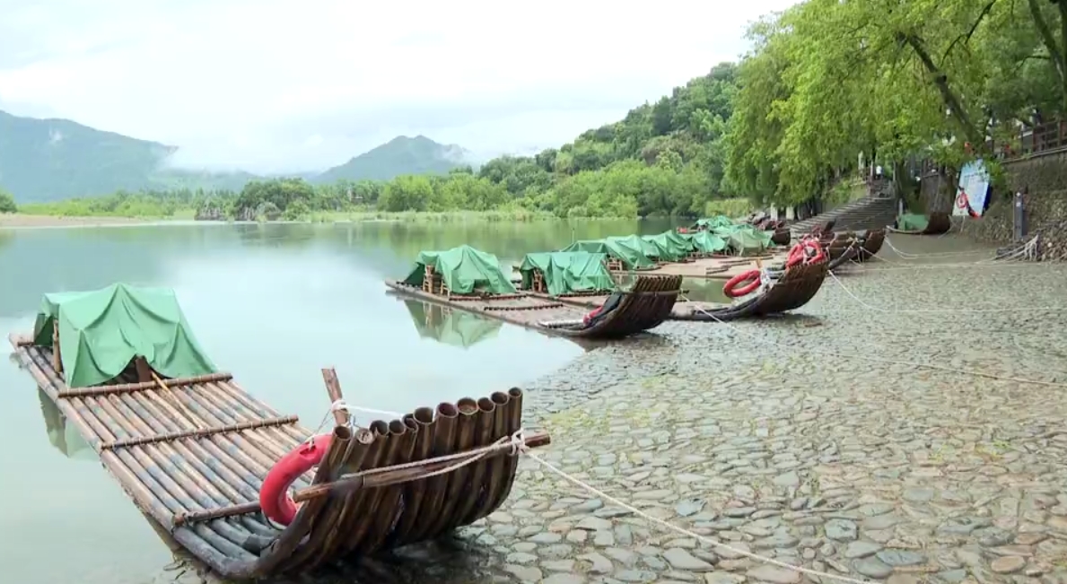 在永嘉縣巖頭鎮(zhèn)獅子巖竹筏漂流點,工作人員正勸游客離開水邊,大型竹筏也已經(jīng)安全轉(zhuǎn)移至避風(fēng)港內(nèi),確保水上設(shè)施穩(wěn)固避風(fēng)。目前景區(qū)加強(qiáng)值班值守力量,嚴(yán)防游客私自進(jìn)入涉水區(qū)域。