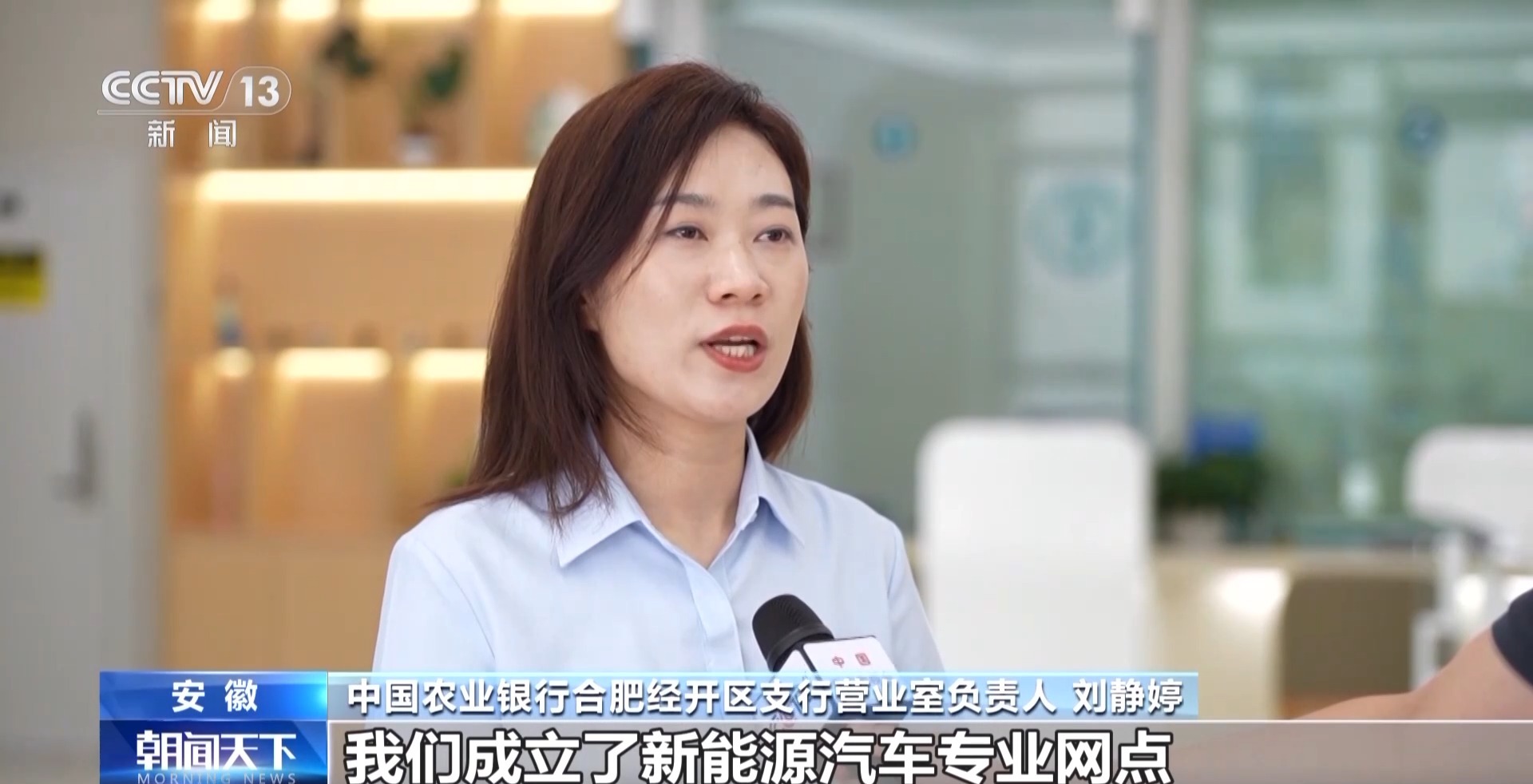 中國(guó)農(nóng)業(yè)銀行合肥經(jīng)開(kāi)區(qū)支行營(yíng)業(yè)室負(fù)責(zé)人 劉靜婷:我們成立了新能源汽車(chē)專(zhuān)業(yè)網(wǎng)點(diǎn),組建一支平均年齡30歲、普遍具有工科背景的年輕服務(wù)團(tuán)隊(duì)。針對(duì)新能源汽車(chē)的融資需求,主動(dòng)上門(mén),為他們量身定制專(zhuān)屬金融服務(wù)方案。到目前為止,已經(jīng)為15戶(hù)新能源汽車(chē)產(chǎn)業(yè)上下游企業(yè)累計(jì)投放貸款60億元。