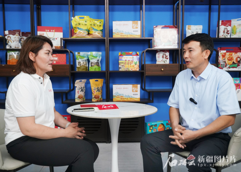 6月30日,在疏勒縣新疆領(lǐng)航新能源科技發(fā)展有限公司,記者拍熱扎提·阿不都圍繞如何培育壯大特色優(yōu)勢產(chǎn)業(yè)、打造文旅品牌等話題,專訪了疏勒縣委副書記、縣長艾孜買提·沙吾爾。