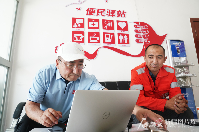 7月1日,在喀什公路事業(yè)發(fā)展中心疏附養(yǎng)護所蓋孜養(yǎng)護站,攝影記者約提克爾·尼加提利用短暫的等待時間整理圖片,準(zhǔn)備發(fā)稿。