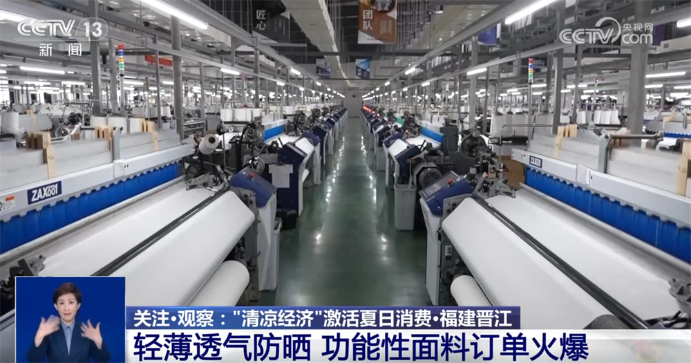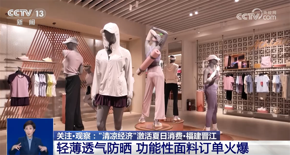除了旅游消費(fèi),盛夏時(shí)節(jié),防曬產(chǎn)品也迎來(lái)銷售旺季。在福建晉江,這里的多家服裝生產(chǎn)或紡織面料企業(yè)生產(chǎn)的涼感、速干、驅(qū)蚊、防曬等功能性面料訂單火爆,備受市場(chǎng)青睞。