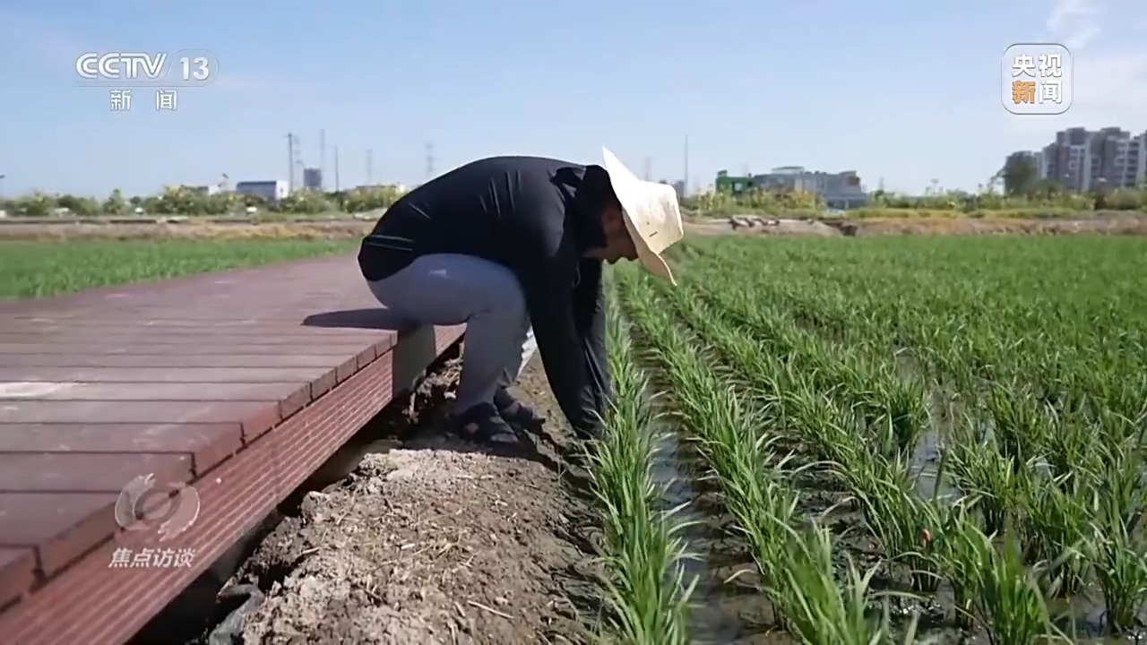 除了湖南,全國各地都在進行良種的推廣選育,記者在江蘇昆山也看到新品種的推廣。7月7日這天,江蘇昆山的氣溫達到35℃。今年高溫來得早,這幾天室外溫度基本上都在35℃以上。昆山高新區(qū)白魚潭村的一片稻田里,種植大戶丁少坤冒著酷暑蹲在田埂上。
